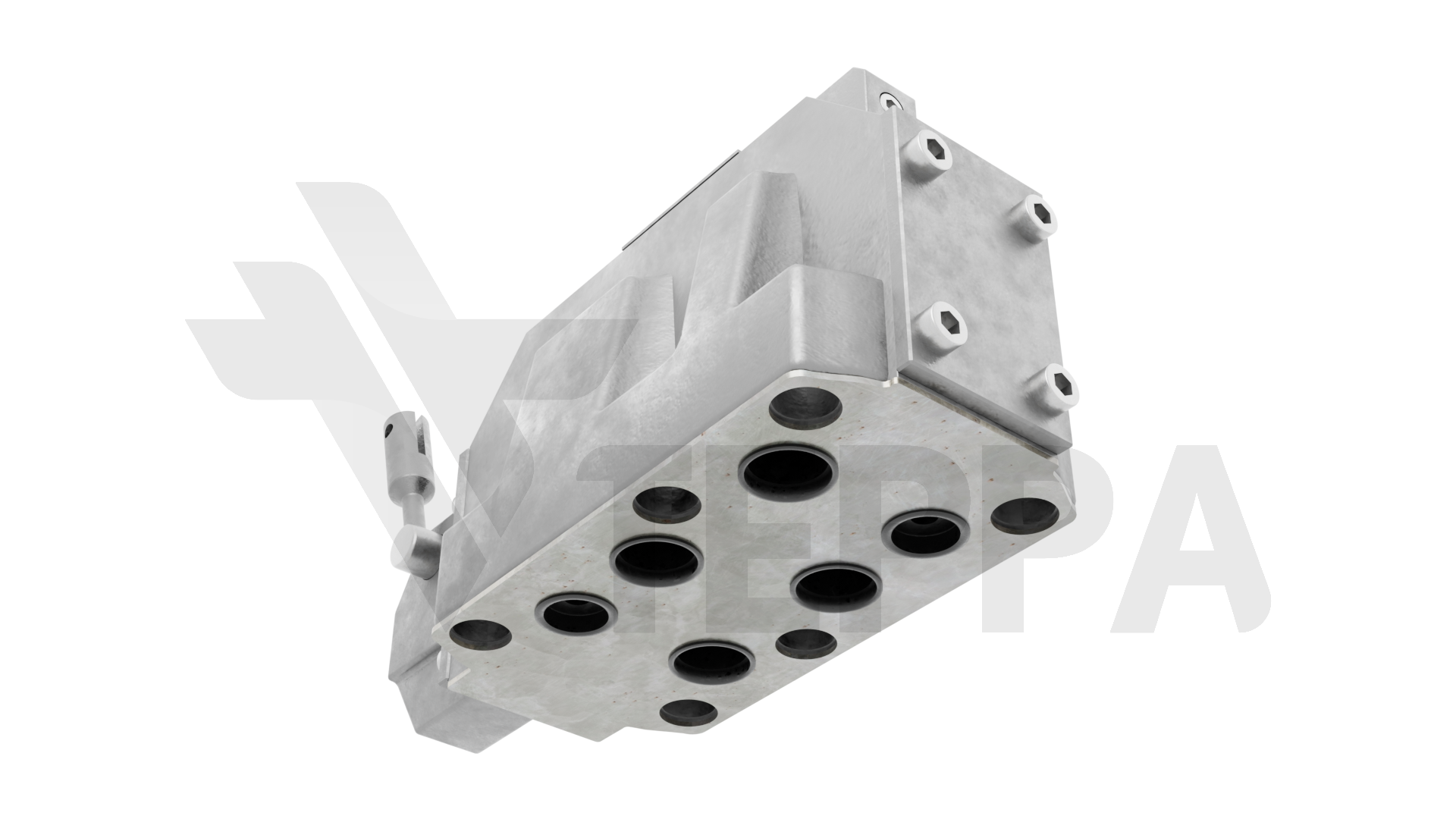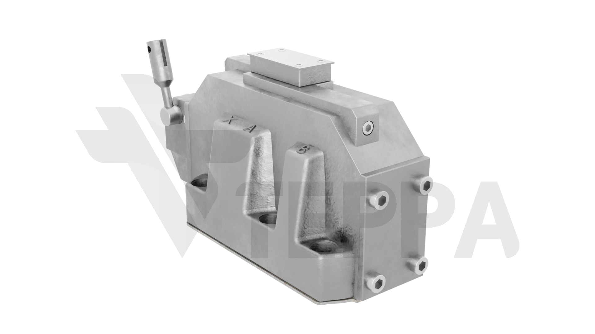 Золотниковый механизм с фиксацией — обеспечивает точное переключение потоков жидкости между каналами Р (вход), Т (слив), А и В (рабочие линии).