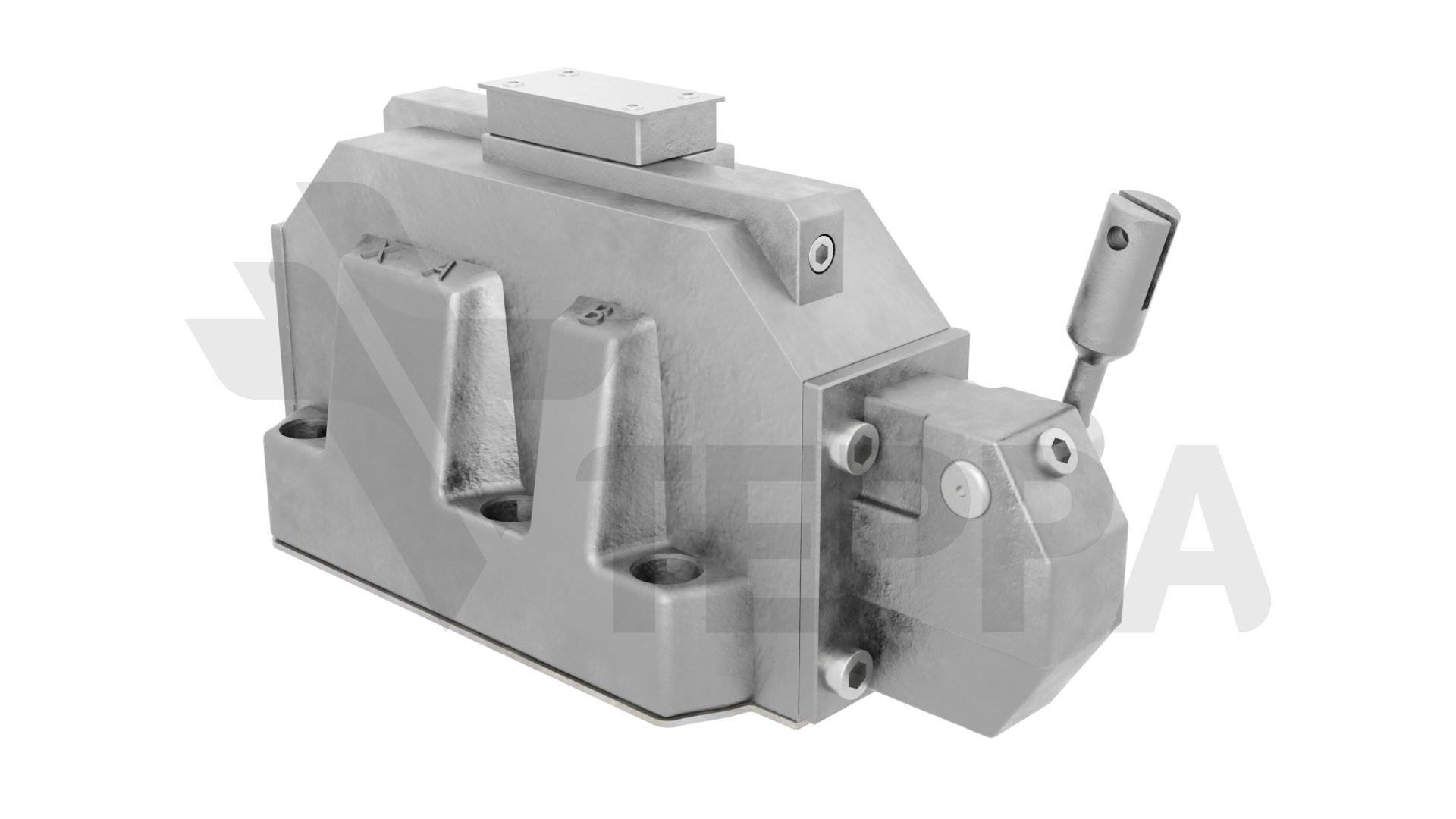 Устройство для изменения направления или пуска/остановки потока рабочей жидкости в гидросистемах буровых установок УРБ 2А2, УРБ 2А2Д, УРБ 2Д3. Совместим с гидрооборудованием, работающим при давлении до 32 МПа, оснащен механическим управлением тягой и пружинным возвратом золотника.