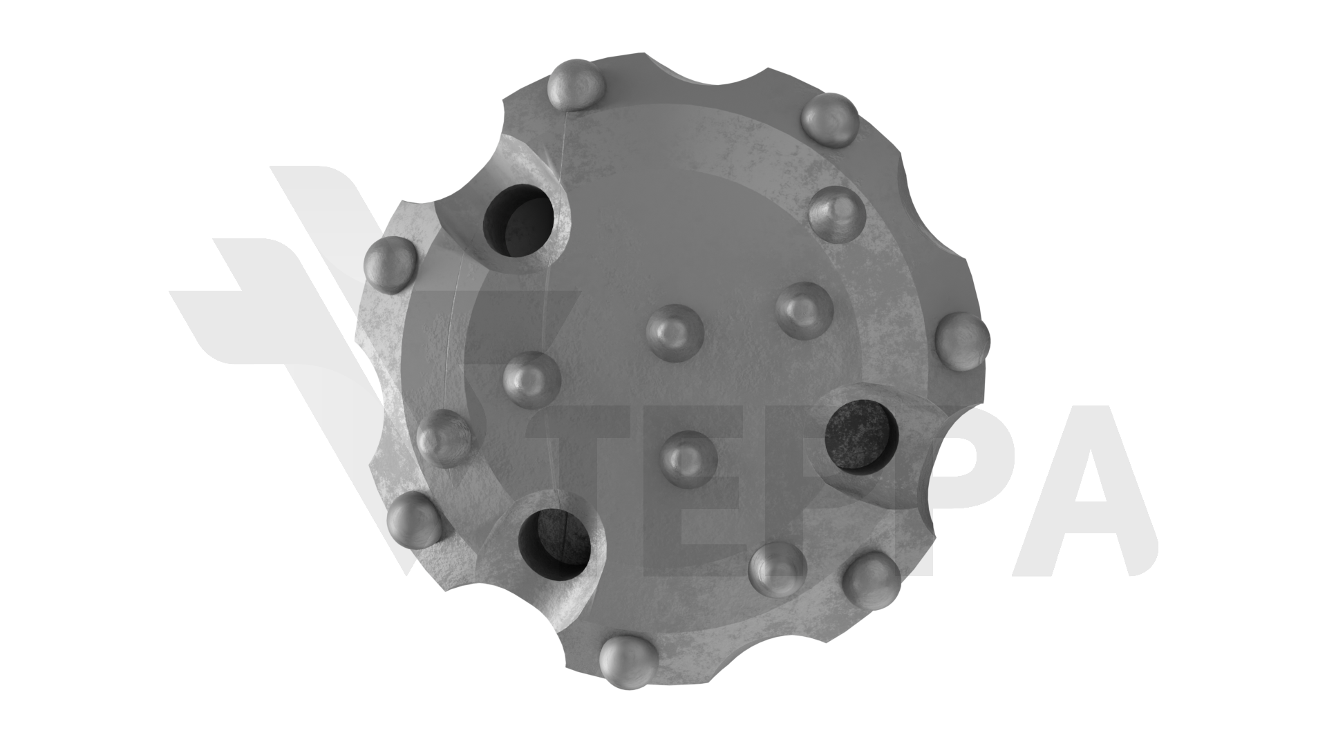 Инструмент для пневмоударного бурения скважин диаметром 150 мм в твердых породах. Совместима с пневмоударниками CIR-110, оснащена комбинированными твердосплавными штырями и шлицевым соединением для быстрой замены.