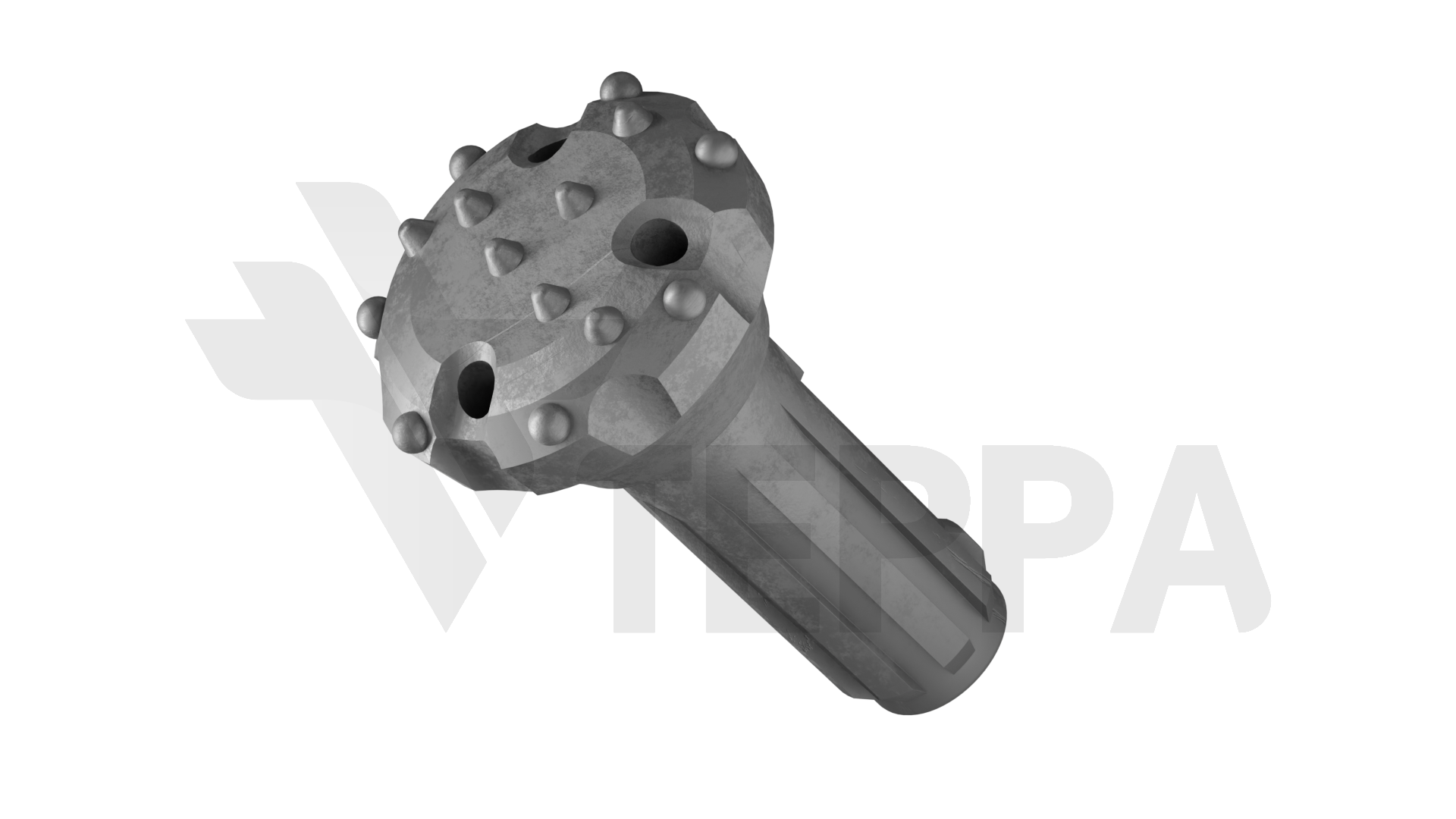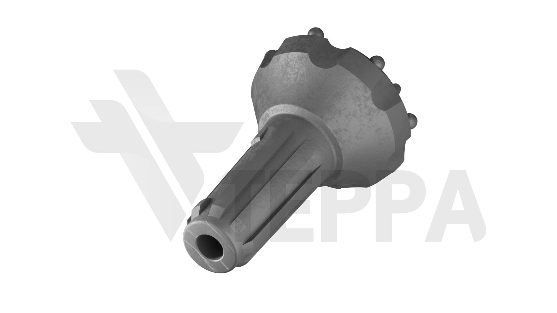 Инструмент для пневмоударного бурения скважин диаметром 170 мм в твердых породах. Совместима с пневмоударниками CIR-110, оснащена комбинированными твердосплавными штырями и шлицевым соединением для быстрой замены.