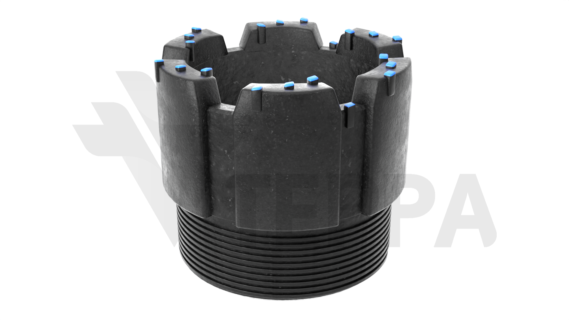 Оснащена секторной матрицей с промывочными каналами и дискретными резцами. Это снижает вибрацию, улучшает отвод шлама и повышает ресурс инструмента.
