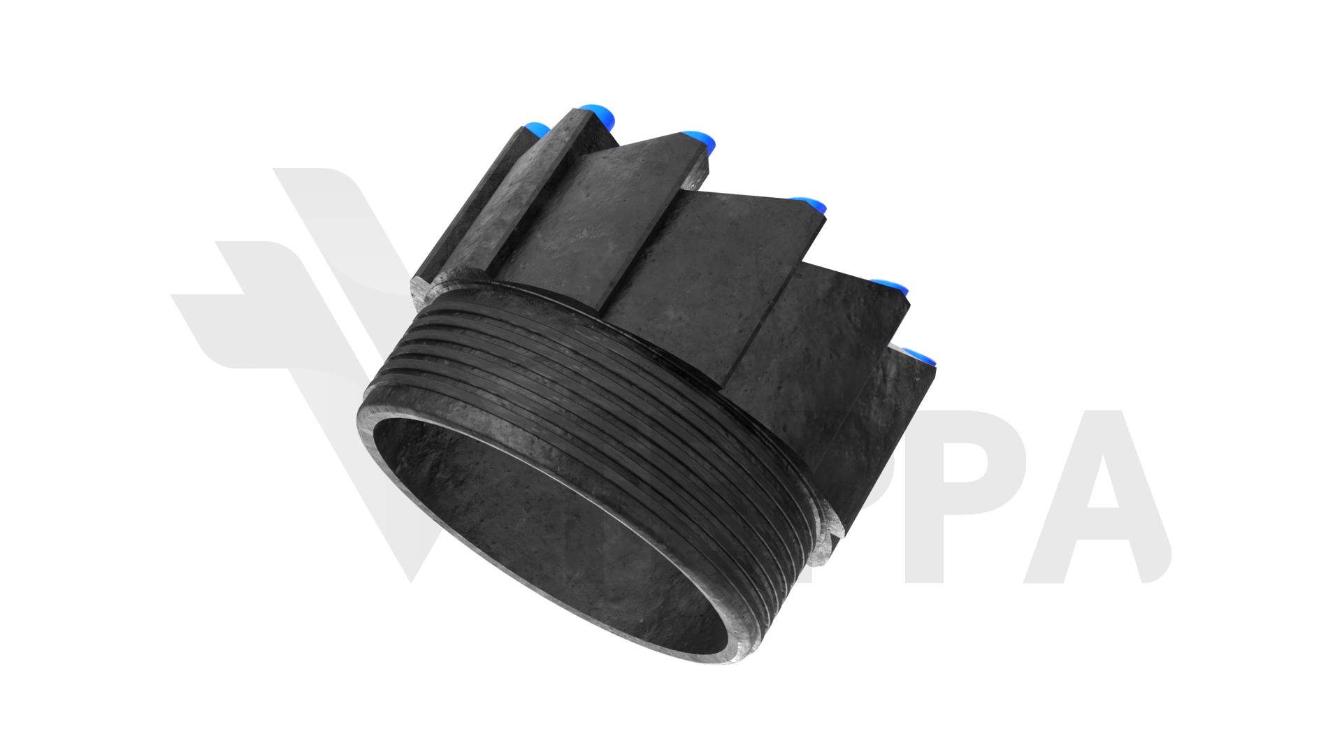 Конструкция включает цилиндрический корпус с резьбой З-50нр для соединения с колонковой трубой и твердосплавными пластинами на рабочем конце. Оптимизирована для бурения абразивных пород VIII–IX категорий (доломиты, аргиллиты, кремнистые сланцы). Промывочные каналы обеспечивают эффективный отвод шлама и охлаждение инструмента.