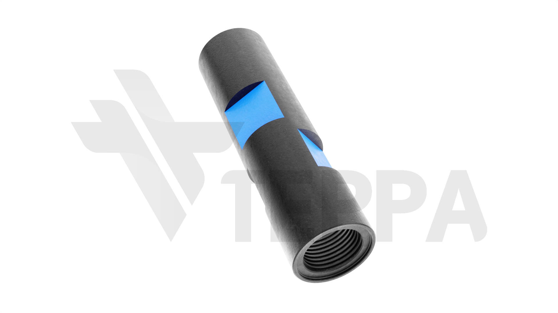 Переводник резьбовой 3-50вн/3-50вн (2 паза) Предназначен для соединения элементов колонны с идентичной замковой резьбой З-50вн. Два паза на корпусе обеспечивают надежную фиксацию монтажным ключом во время сборки.