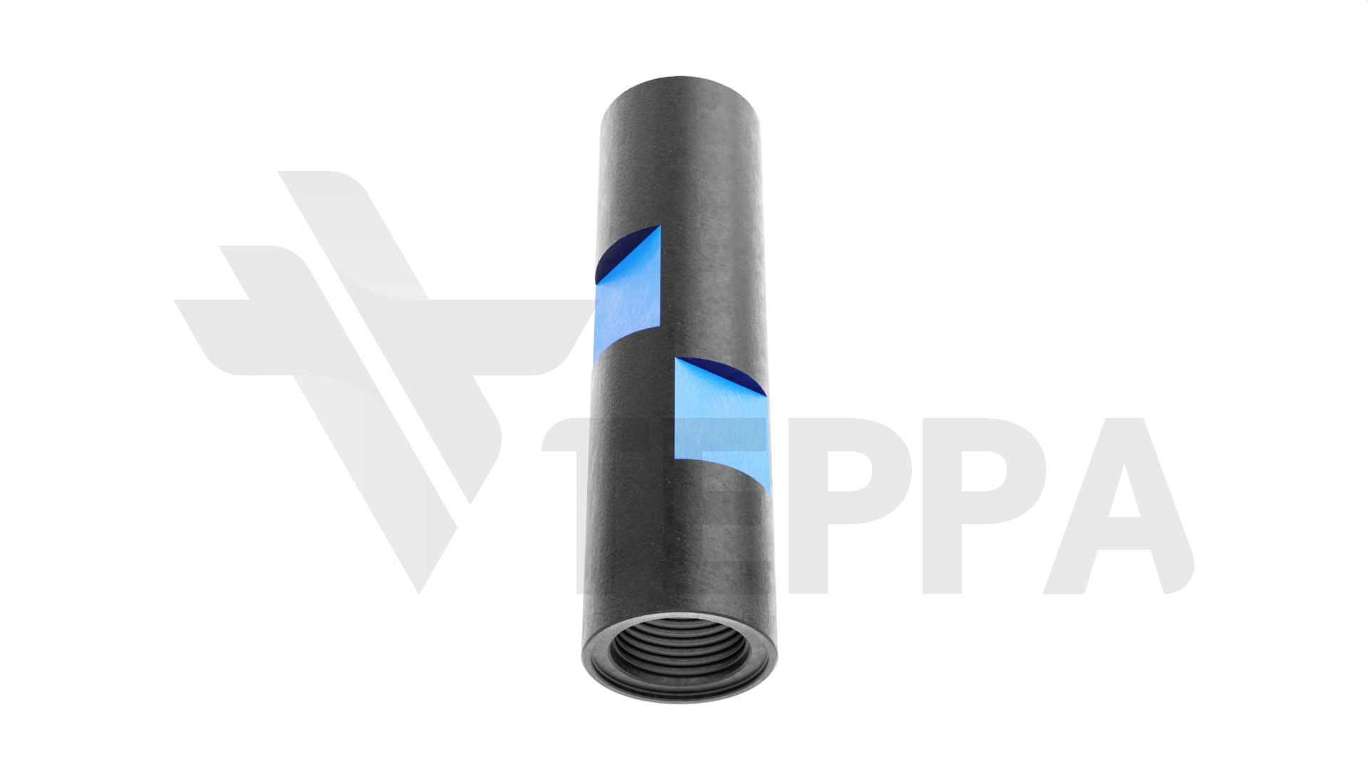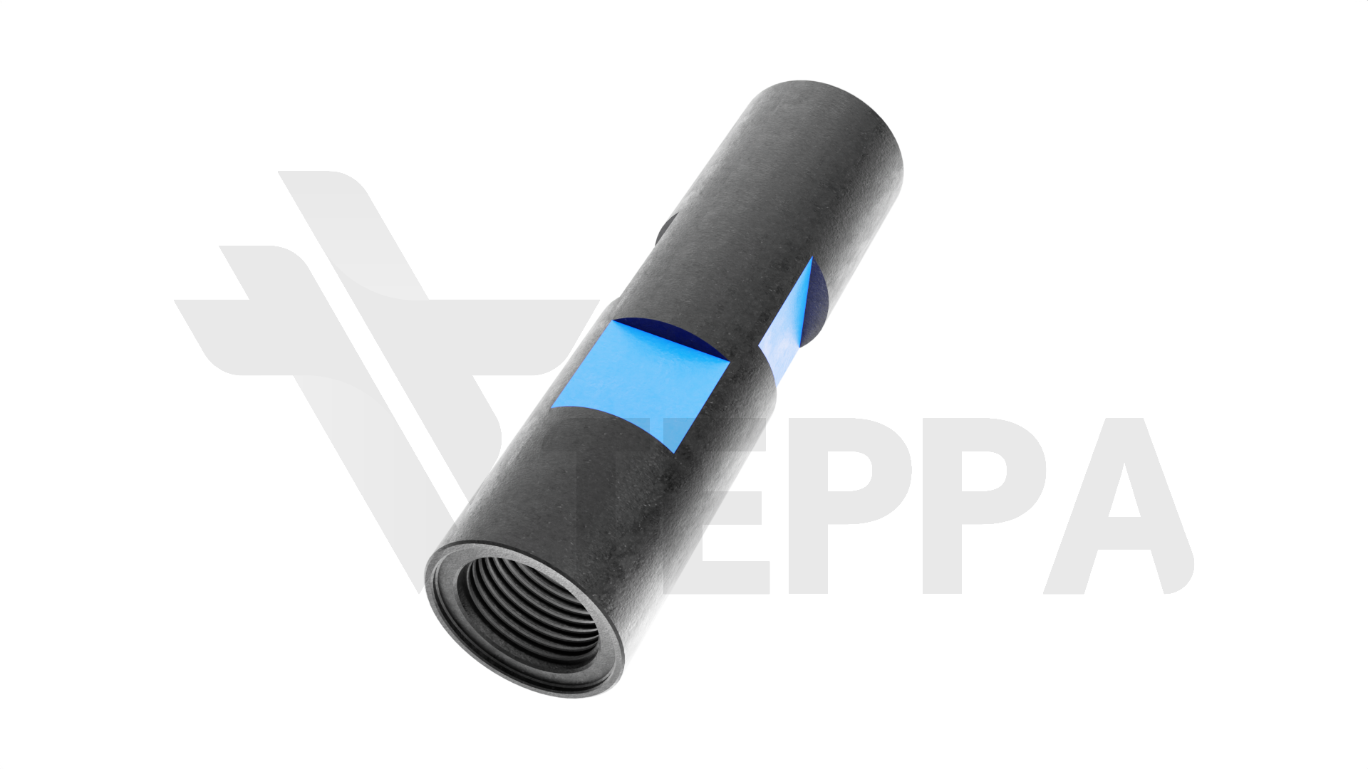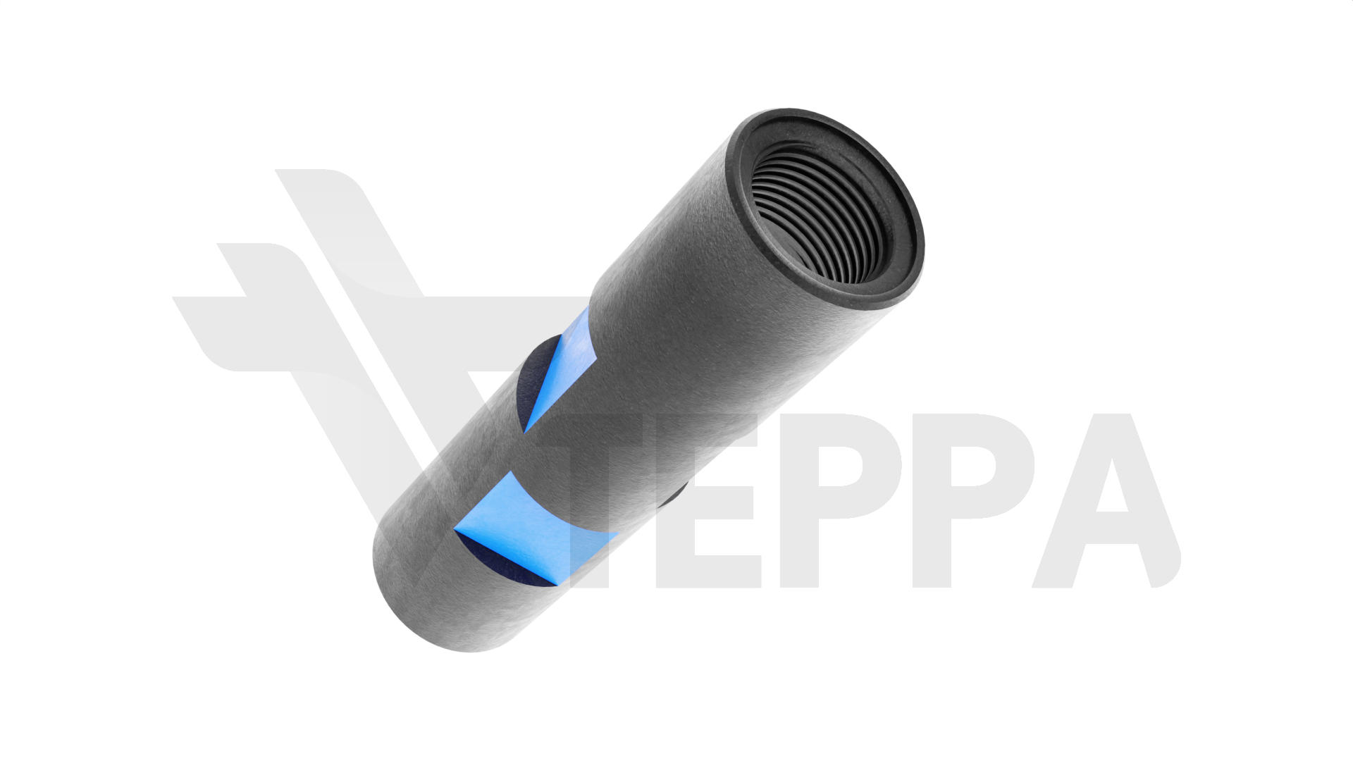 Соединительный элемент для буровой колонны с одинаковой резьбой З-50вн (внутренняя замковая) с двух сторон. Оснащен двумя пазами под ключ для фиксации при монтаже.