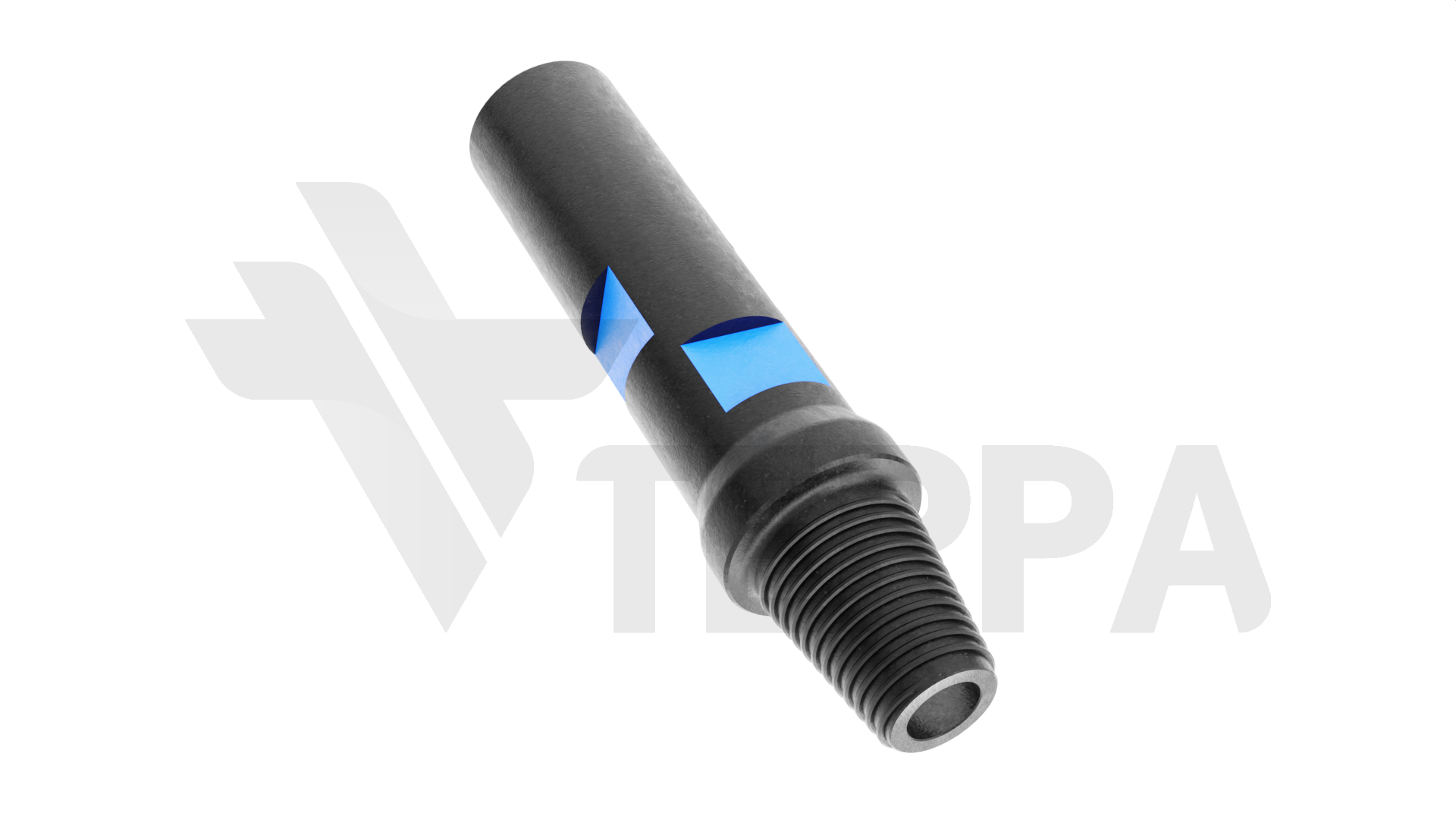 Переходник для пневмоударника CIR-110/130 (З-50вн/З-66нар, 2 паза) Предназначен для надежного соединения буровых штанг (резьба З-50вн) с пневмоударниками серии CIR-110/130 (резьба З-66нар). Два паза на корпусе позволяют зафиксировать инструмент ключом при сборке, предотвращая проскальзывание. Конструкция оптимизирована для передачи ударных нагрузок и вибрации без деформации.