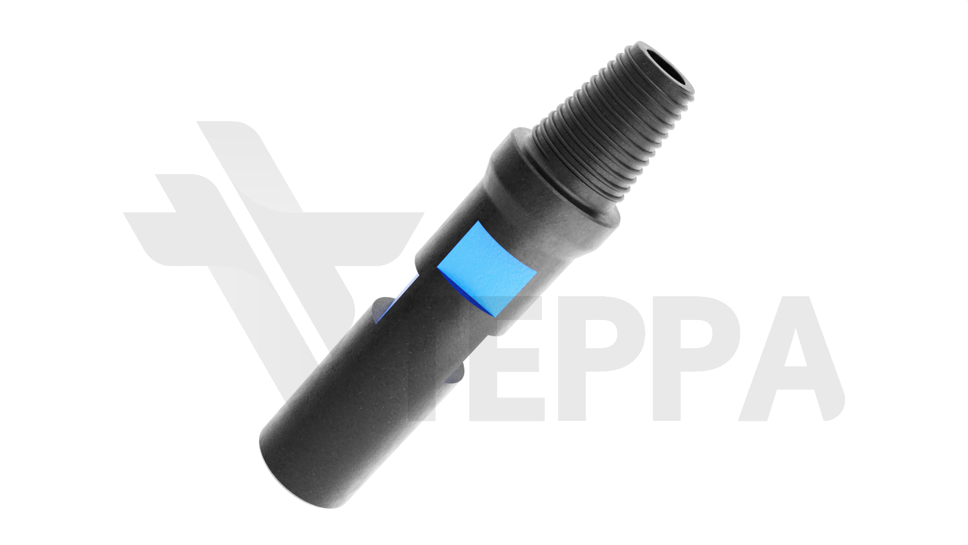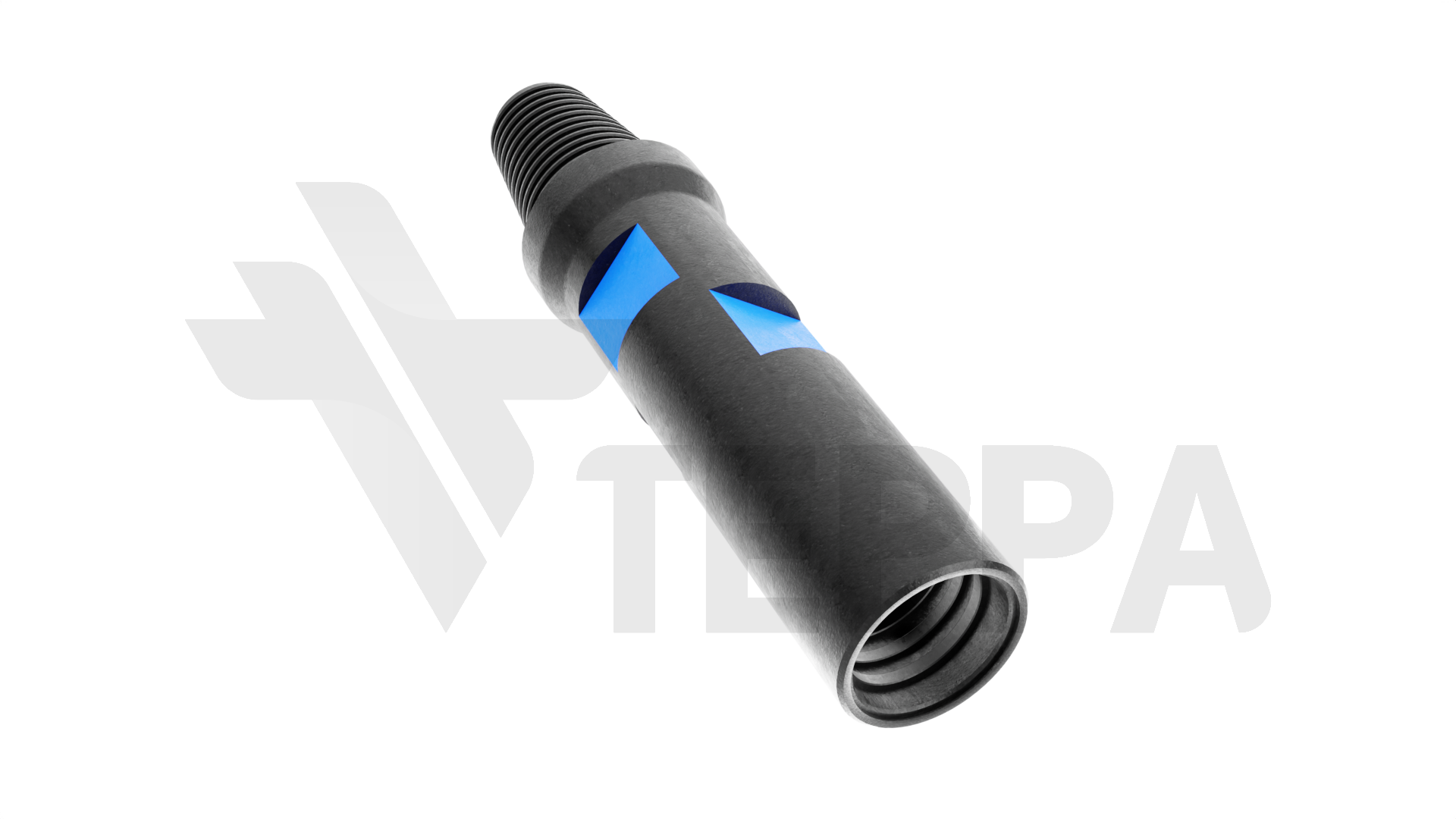 Соединительный элемент для стыковки бурильной колонны с резьбой З-50вн и пневмоударника CIR-110/130 с резьбой З-66нар. Два паза обеспечивают фиксацию монтажным ключом.