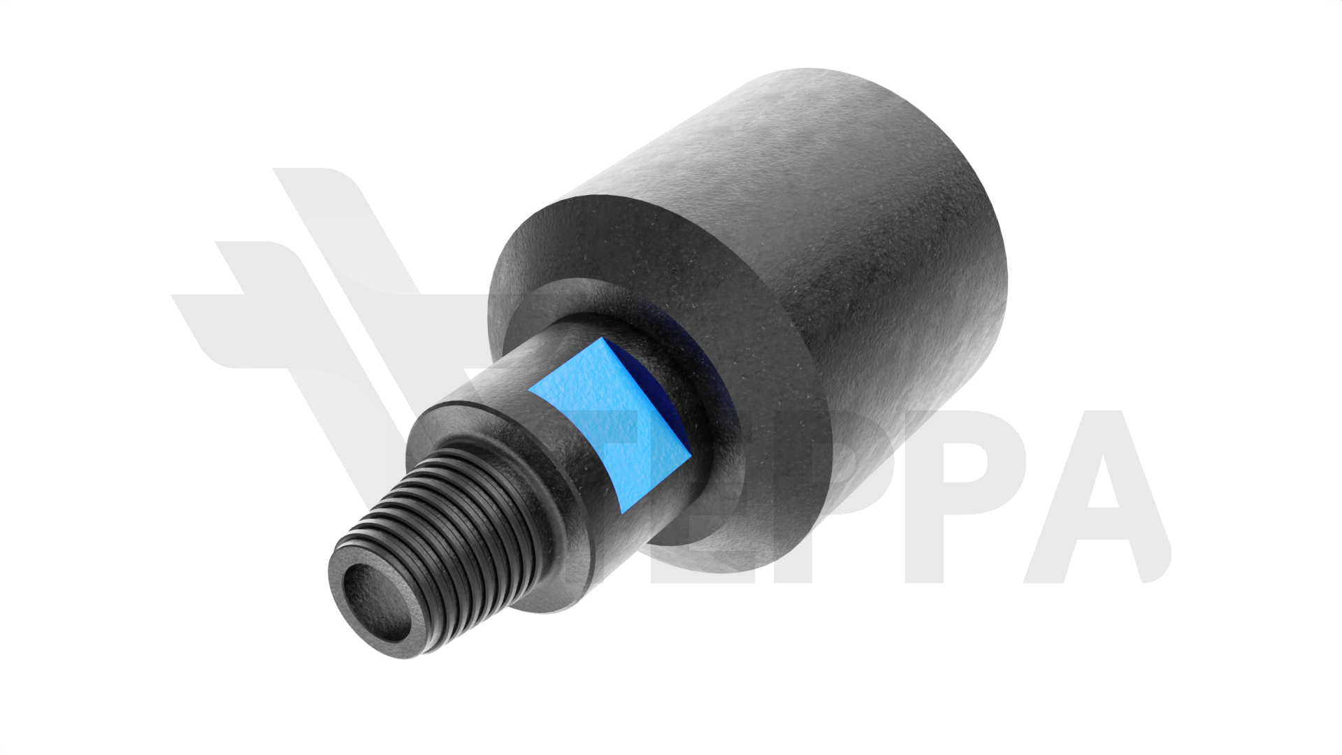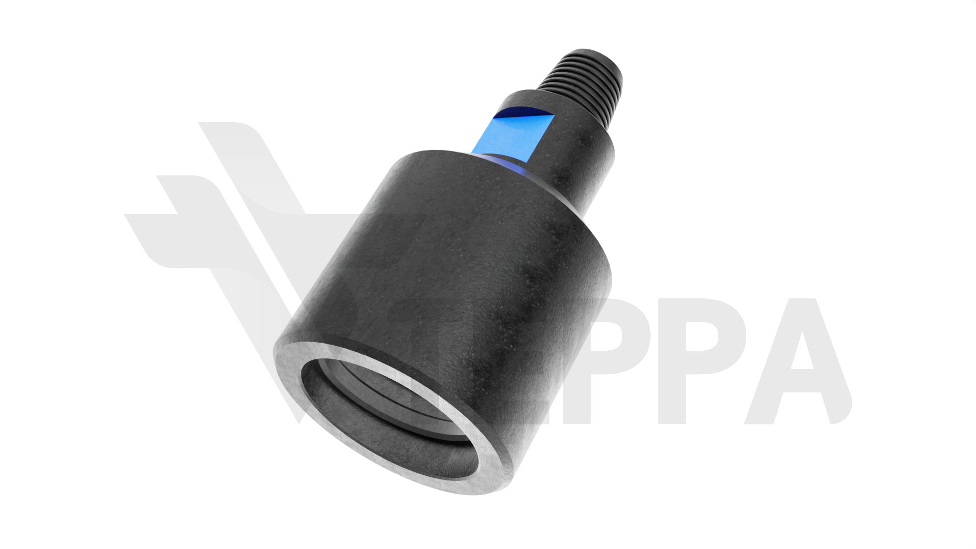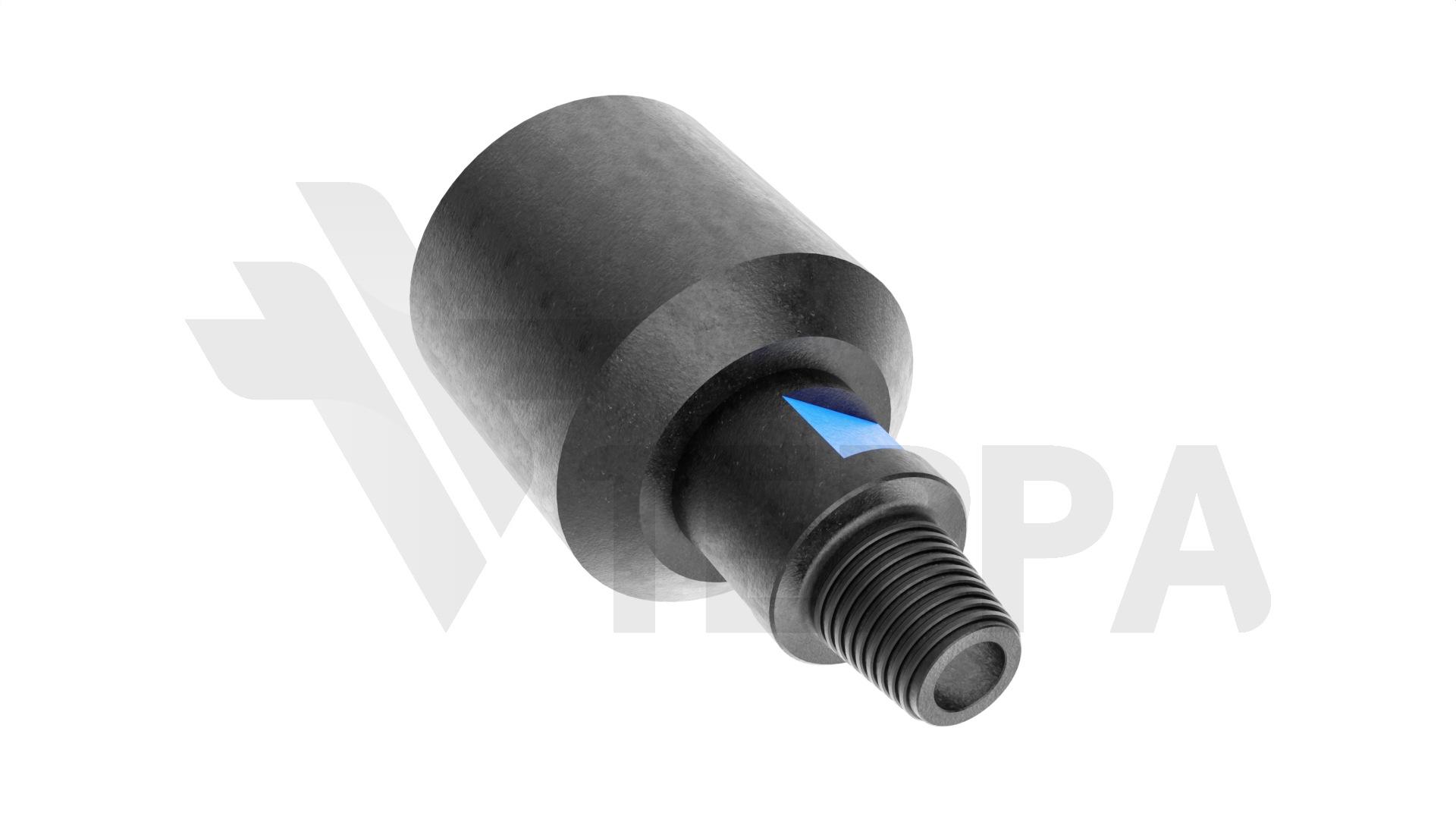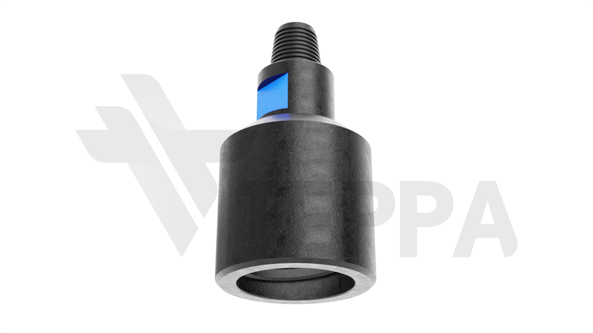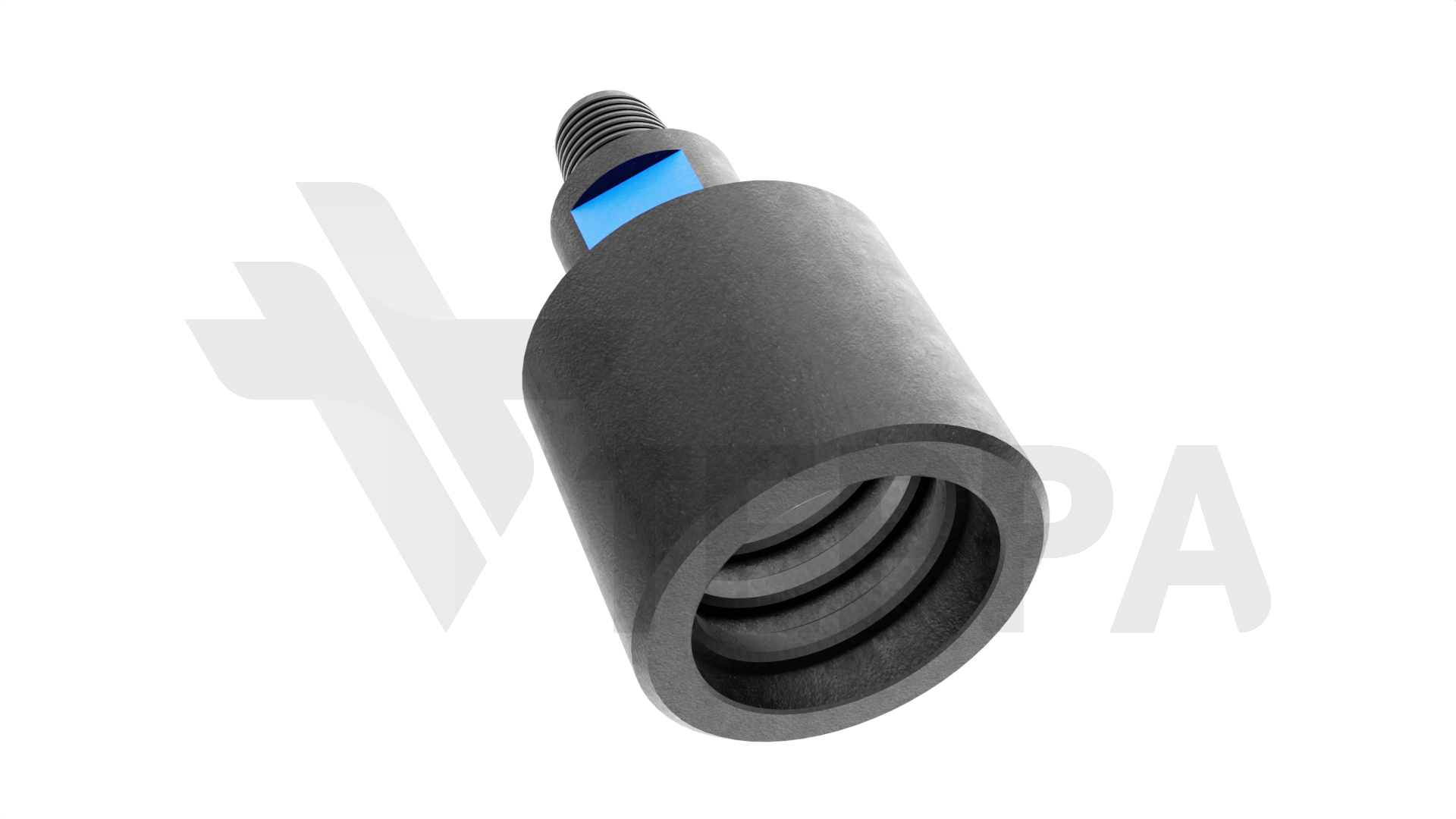 Переходник резьбовой 3-50вн/CIR170 (2 паза) Предназначен для надежного соединения колонны буровых штанг (резьба З-50вн) с пневмоударником CIR-170. Два паза под ключ 46 мм обеспечивают жесткую фиксацию при сборке, предотвращая проворачивание под ударными нагрузками. Конструкция рассчитана на передачу высокочастотных вибраций и осевых усилий, характерных для пневмоударного бурения.