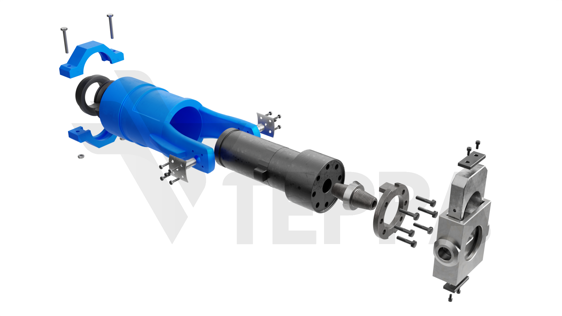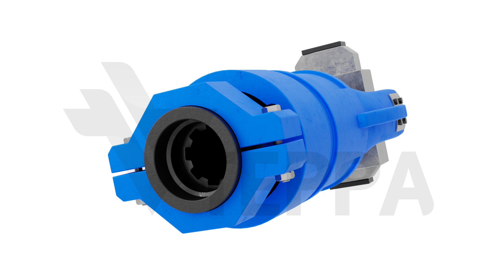 Захватное устройство для подъема, удержания и свинчивания/развинчивания бурильных труб в буровых установках УРБ 2А2, УРБ 2А2Д. Рассчитан на работу с трубами Ø50–114 мм при нагрузках до 15 кН.