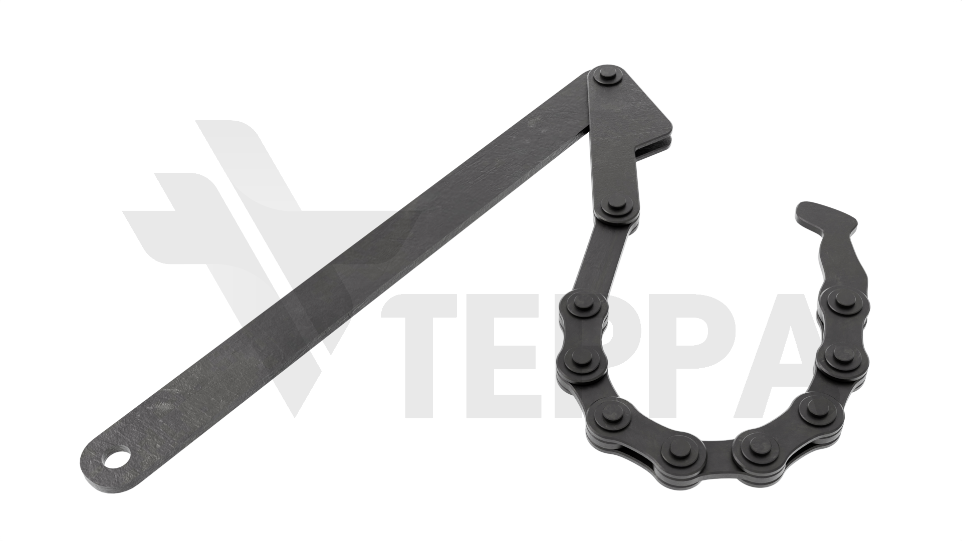 Предназначен для работы с трубами и компонентами буровых систем. Конструкция включает храповый механизм: при движении рукояти вниз цепь автоматически натягивается, обеспечивая надежный захват детали. Губки из стали фиксируют элемент без проскальзывания.
