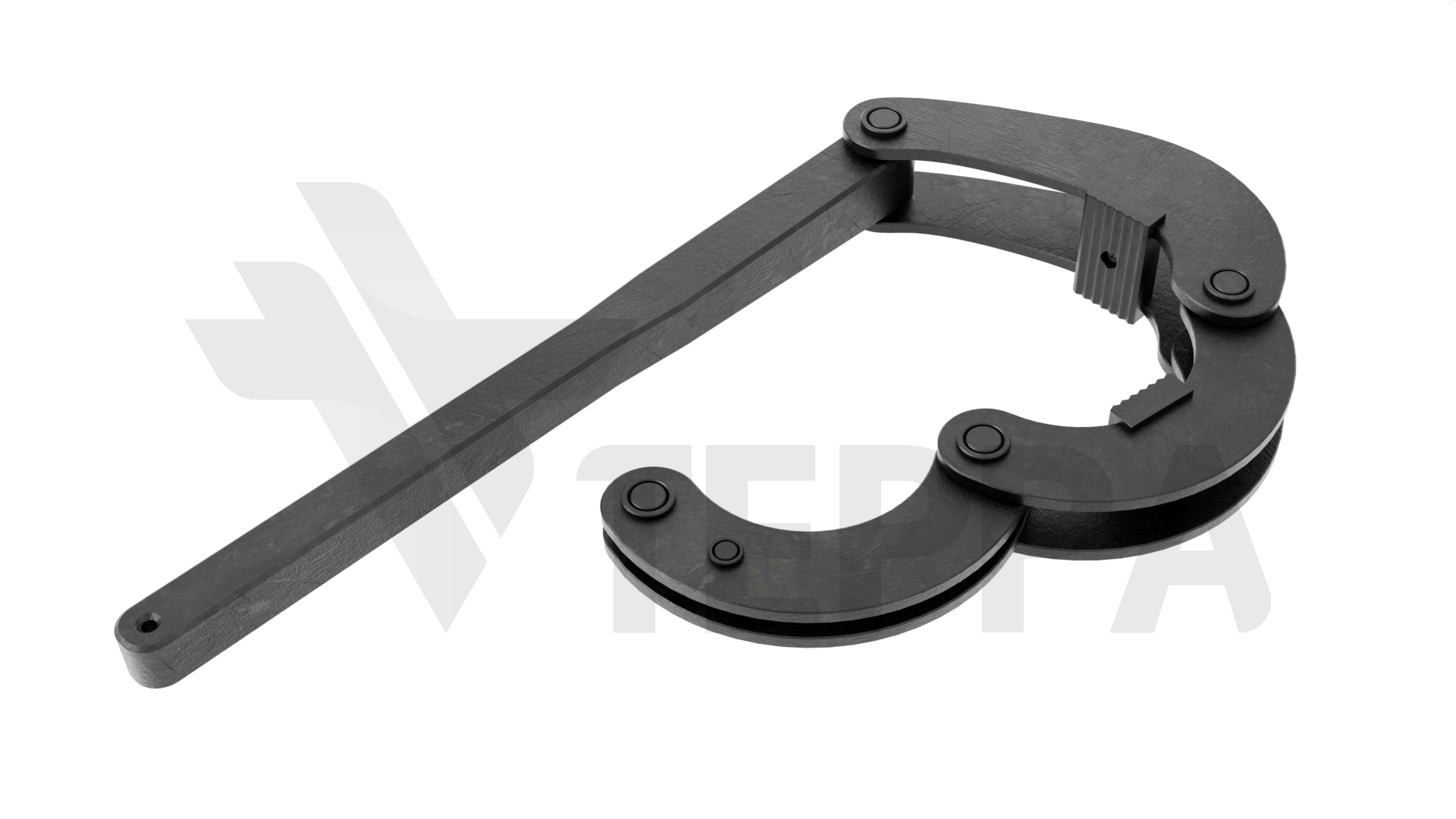 Конструкция состоит из пар скоб, соединенных шарнирами, и усиленной рукоятки. Съемные плашки (сухари) с рифленой поверхностью обеспечивают фиксацию труб без повреждения их наружного слоя. Ключ оптимизирован для работы с диаметром 146 мм, что упрощает комплектацию буровых установок. Допускает применение усилителей для раскручивания заклинивших соединений в аварийных случаях, но не рассчитан на их постоянное использование.