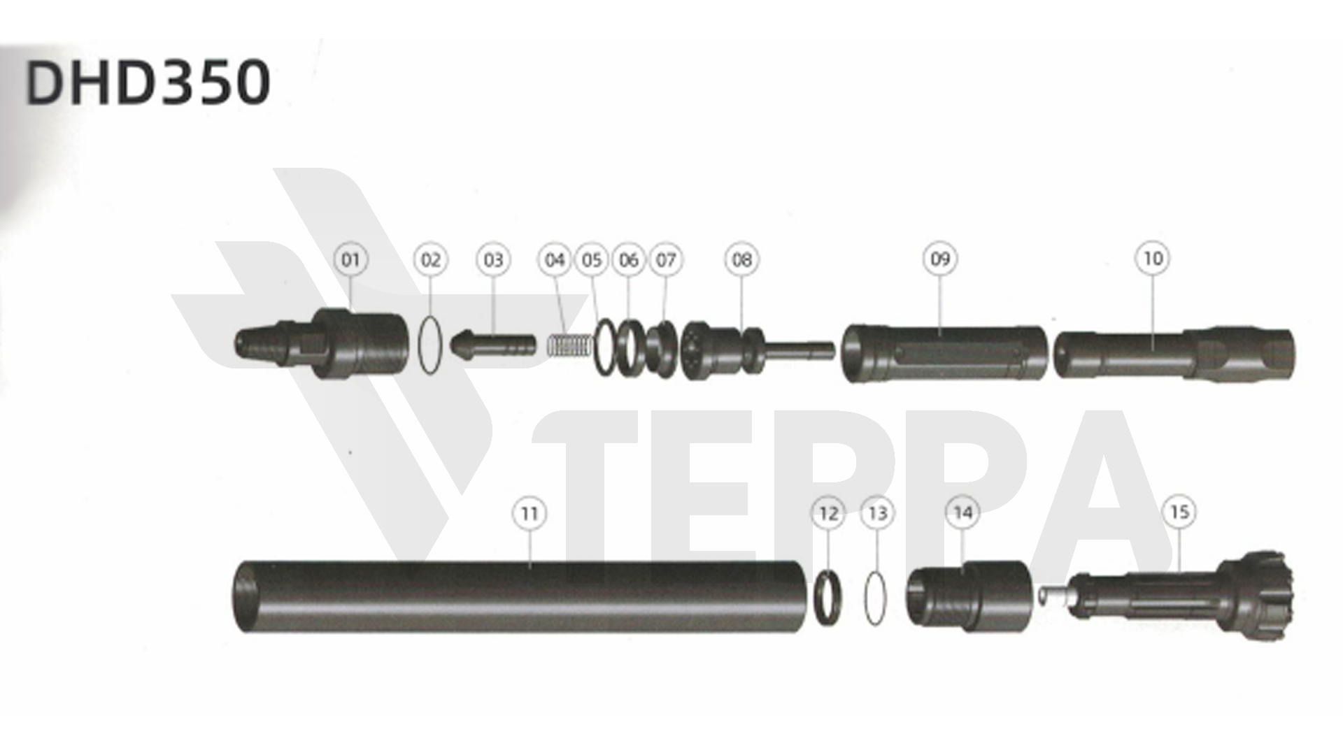 Пневмоударник DHD350 — для профессионального бурения в тяжелых условиях. Мощный инструмент для работ с коронками стандарта DHD при высоком давлении. Для горных выработок, карьерных работ, промышленного строительства.