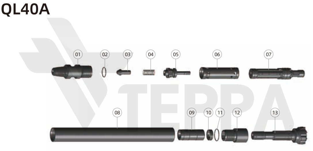 Пневмоударник QL40А (под коронку с клапаном) — для эффективного бурения в сложных условиях. Надежный инструмент для работ с клапанными коронками при высоком давлении. Для горных выработок, карьерных работ, промышленного строительства.