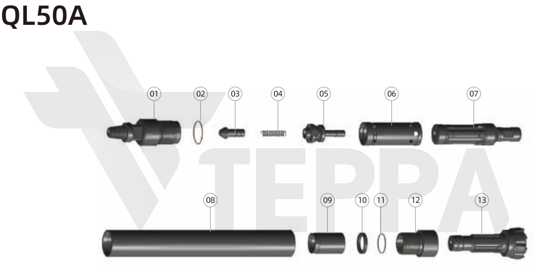 Пневмоударник QL50А (под коронку с клапаном) — для эффективного бурения в сложных условиях. Надежный инструмент для работ с клапанными коронками при высоком давлении. Для горных выработок, карьерных работ, промышленного строительства.