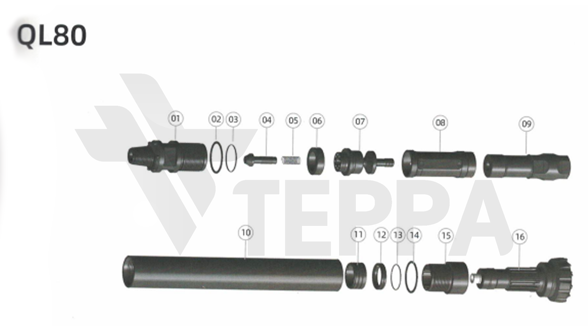 Пневмоударник QL80 — для промышленного бурения крупных отверстий. Мощный инструмент для работ при высоком давлении. Для карьерных работ, глубоких выработок, промышленного строительства.