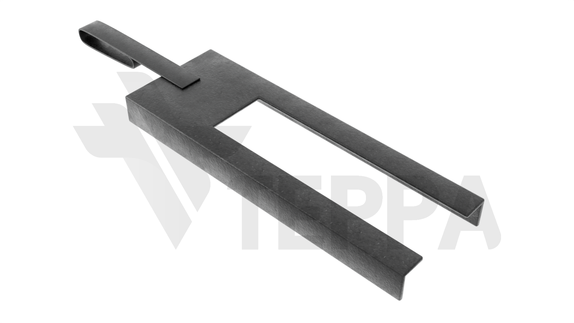 Изогнутая стальная конструкция с П-образным зевом, охватывающим штангу. Оснащена стопорным фиксатором, блокирующим вилку в замках колонны. Шарнирный механизм позволяет быстро устанавливать/снимать устройство.